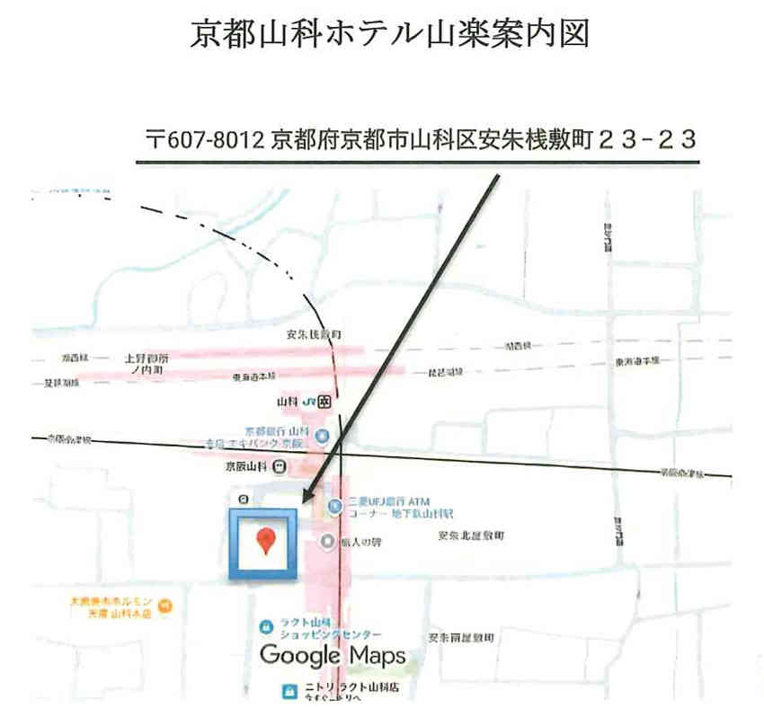 ※ホテル山楽は山科駅徒歩3分です。後述案内図を参照ください。