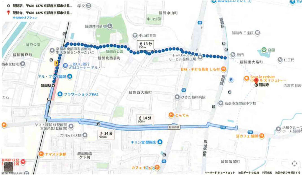 ②奈良線 「六地蔵駅」乗り換え地下鉄東西線醍醐駅下車徒歩15分